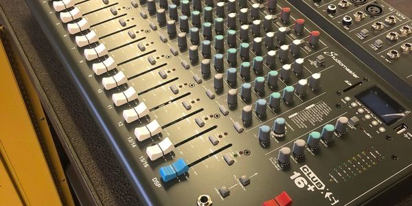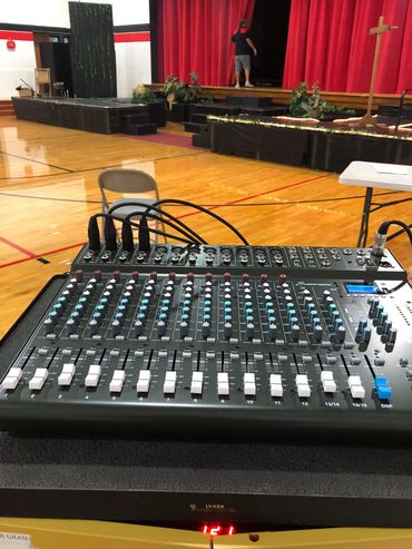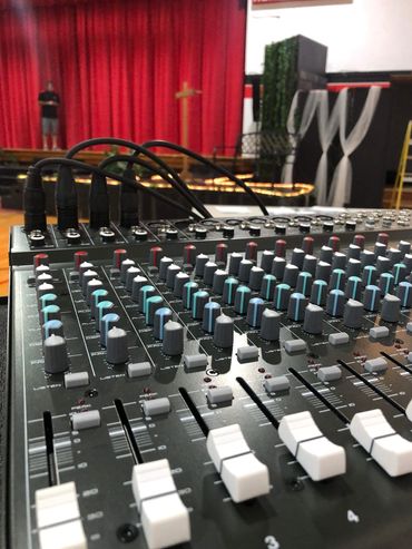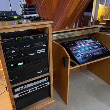 Allen & Heath QU24 mixer with an AR84 digital snake. The capability of running one CAT5e network cable in place of countless cables never gets old! A digital snake is one of the best upgrades any church can do to their sound system. It makes for a clean installation and reduces so much clutter behind the desk!