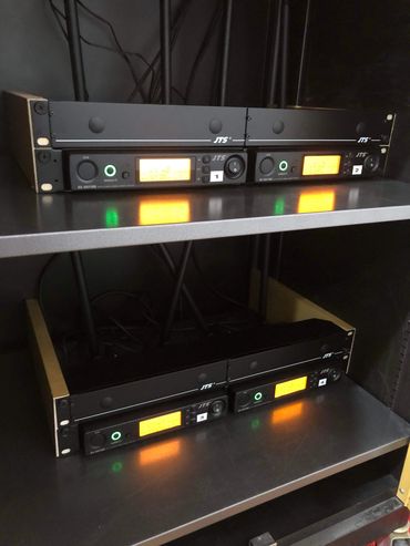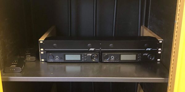 (Third picture from the left) LISTEN Technologies WiFi Hearing Assist system. This system is so easy to use. Download the free app, select one of the two channels available, connect your Bluetooth enable earbuds, headphones or hearing aids to your device and start listening to the worship service.