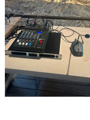 We used (3) Studiomaster Direct 121s to cover the park area surrounding the swimming pool. Using the JTS 10STX & SRX system, we wirelessly ‘extended’ the sound system to these speakers, rather than run wires. The range of the furthest speaker, out by the Cherokee team tent was roughly 125 yards! Sounded amazing!